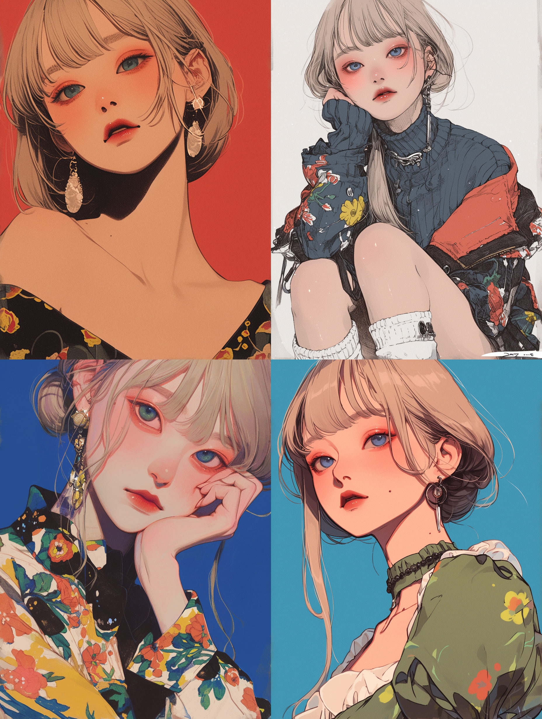 미드저니를 사용해서 이미지를 만들 때 '같은 얼굴로 만들어주는' 명령어가 있어서 연습해보려고 만든 그림.