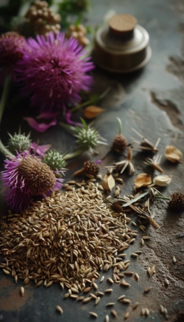 이 식물의 씨앗에서 추출한 실리마린이라는 성분이 간을 보호하고 재생하는 데 큰 역할을 한다고 알려져 있습니다.