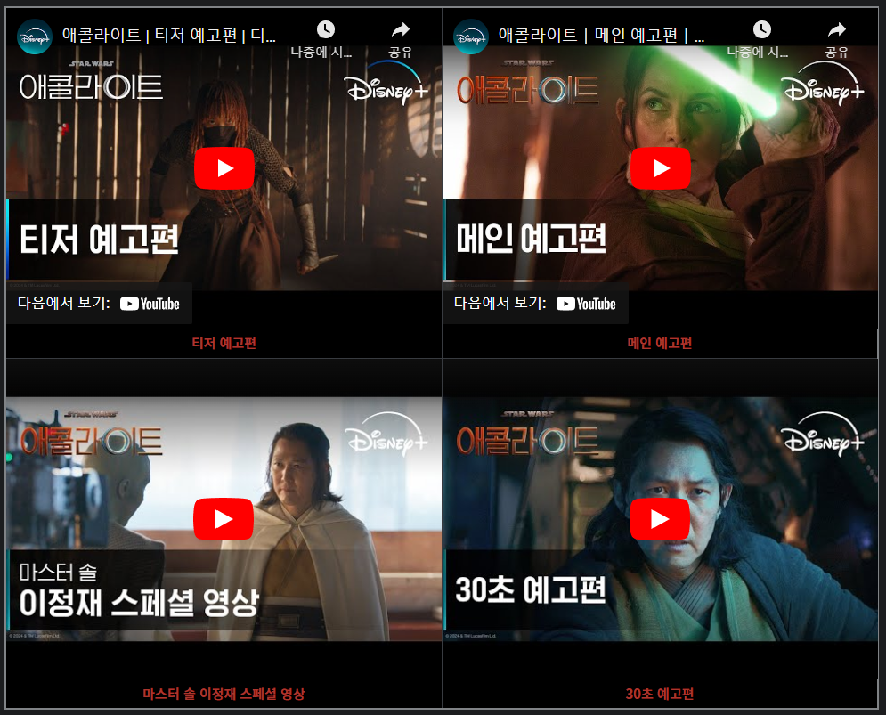 한편, 이정재의 색다른 도전과 연기력을 만나볼 수 있는 '애콜라이트'는 디즈니+에서 매주 수요일 한 편씩 총 8개의 에피소드로 공개됩니다! 많은 관심 부탁드려요!😊