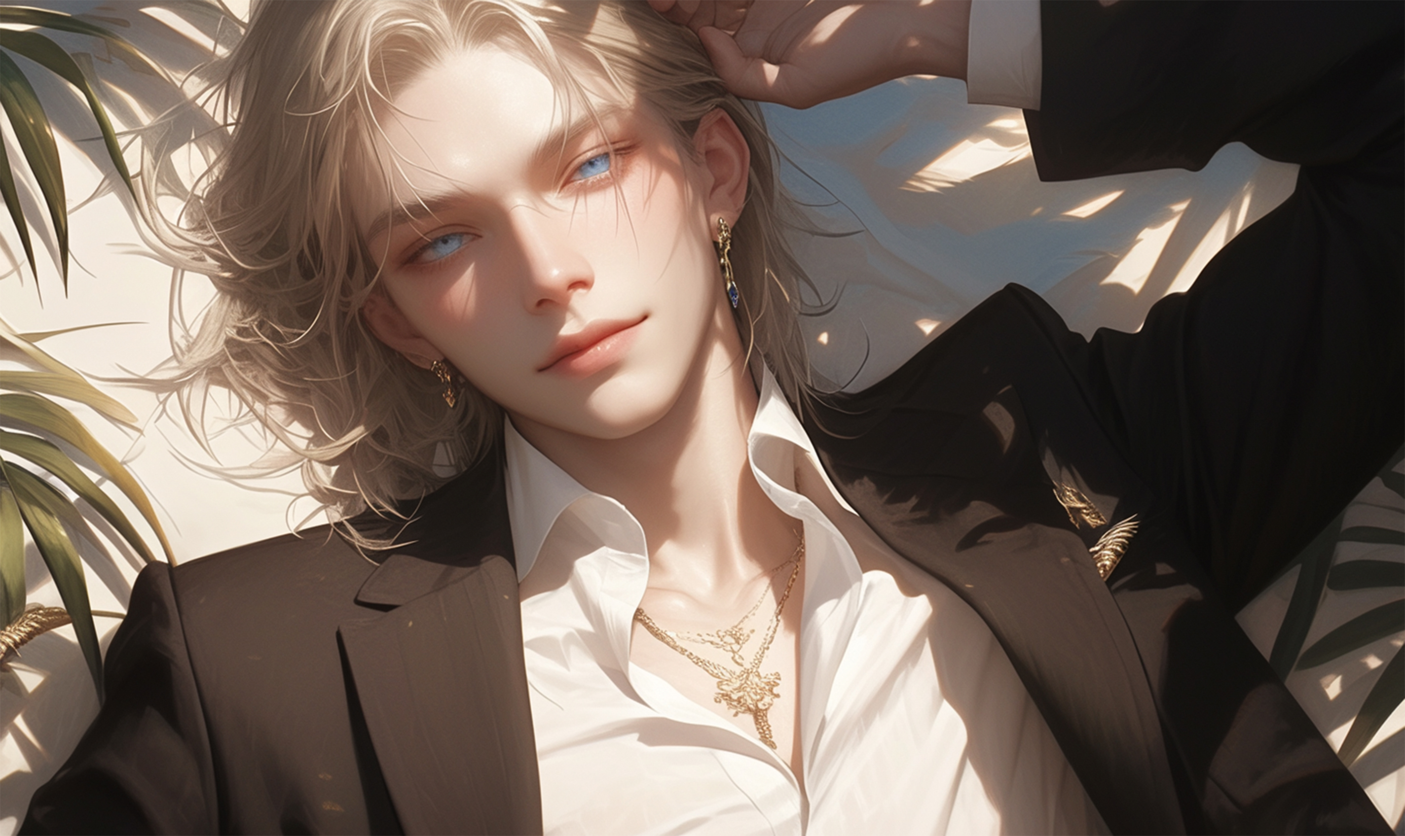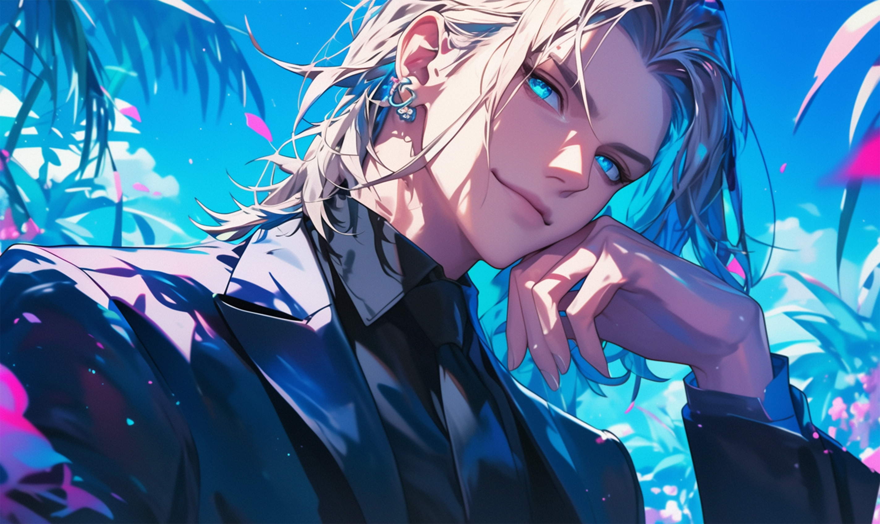 플레이브라는 한국 버추얼 남자 아이돌 그룹의 노아라는 친구의 비주얼 특징들을 포인트로 제작한 팬아트 배경화면입니다!
