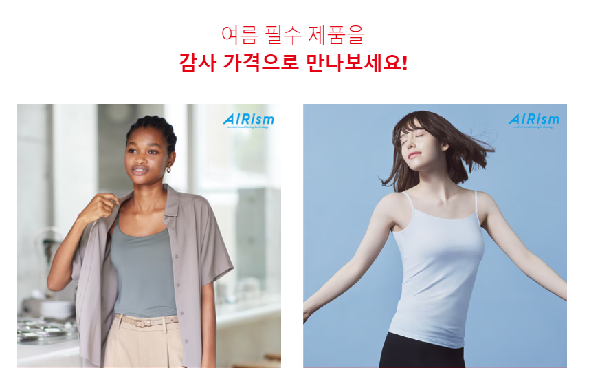 여름으로 넘어가는 이 시기에 시원한 에어리즘 시리즈의 옷들을 미리 준비해두면 좋겠죠?